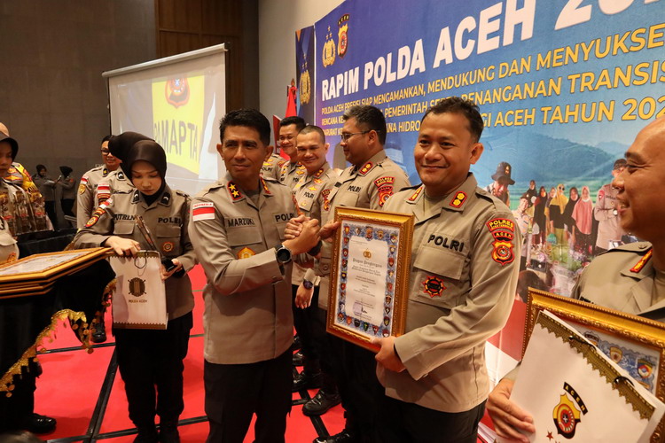 Penghargaan tersebut diserahkan langsung oleh Kapolda Aceh, Irjen Pol. Drs. Marzuki Ali Basyah, M.M. kepada Kapolres Aceh Tenggara Akbp Yulhendri, S.H., S.I.K., M.I.K. dalam kegiatan Rapat Pimpinan (Rapim) Polda Aceh dan jajaran yang berlangsung di The Pade Hotel, Selasa (24/02/2026).