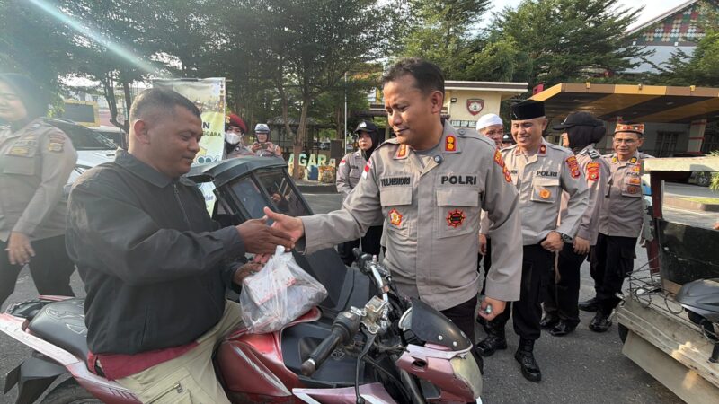 Aceh Tenggara – Dalam rangka meningkatkan kepedulian sosial serta mempererat hubungan dengan masyarakat di bulan suci Ramadan, Kapolres Aceh Tenggara AKBP Yulhendri, S.I.K. bersama para Pejabat Utama (PJU) dan Polisi Wanita (Polwan) Polres Aceh Tenggara melaksanakan kegiatan pembagian takjil kepada masyarakat. 06 Maret 2026